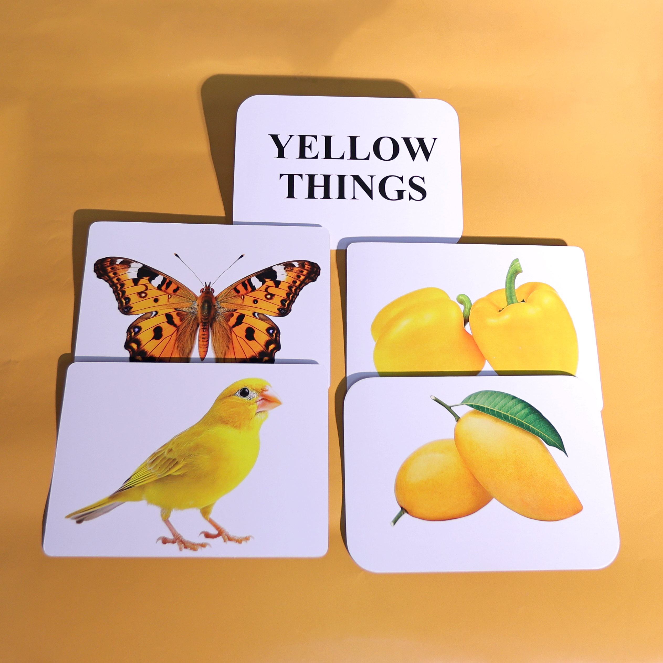 – High-Quality Flash Cards: Each card features a vibrant image of a yellow thing, such as bananas, sunflowers, lemons, or yellow animals, along with its name and fun facts. – Colorful and Cheerful: Designed to put a smile on kids’ faces and make learning a sunny experience. – Easy to Use: Perfect for self-study, classroom use, or playtime, with a compact size for on-the-go learning.Quantity : A Set of 21 Cards |